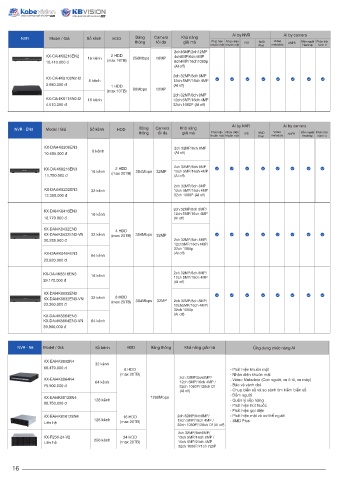 NVR Model / Giá Số kênh HDD Băng Camera Khả năng AI by NVR AI by camera