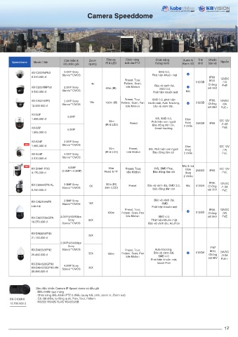 Speeddome Model / Giá Cảm biến & Zoom IR & LED tuần tra PTZ Chức năng Audio & Thẻ Chuẩn Nguồn