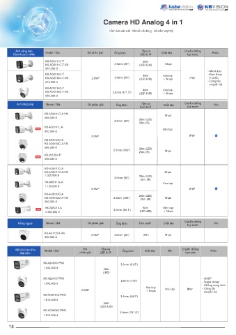 HDCVI Color Pro Model / Giá Độ Tầm xa Ống kính Chất liệu Mic Chuẩn chống Khác